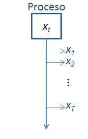 En cada momento se observa un posible resultado (o realización) del proceso estocásticos.