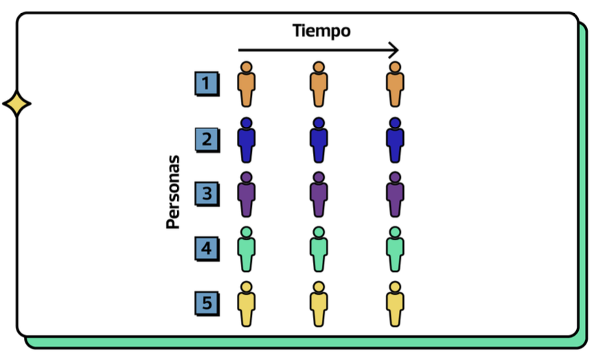 Cada fila reprsenta un individuo (personas, familias, empresas) en un momento del tiempo específico (mismo año, mismo mes, etc). (usualmente)