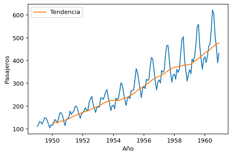 Podemos identificar la tendencia en los datos, al calcular la media movil.