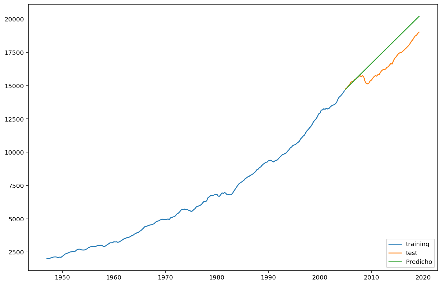 Si nos fijamos, ahora la predicción es mucho mejor. - - Podemos seguir refinando la elección de tiempo, especialmente al considerar la posibilidad de quiebres estructurales.