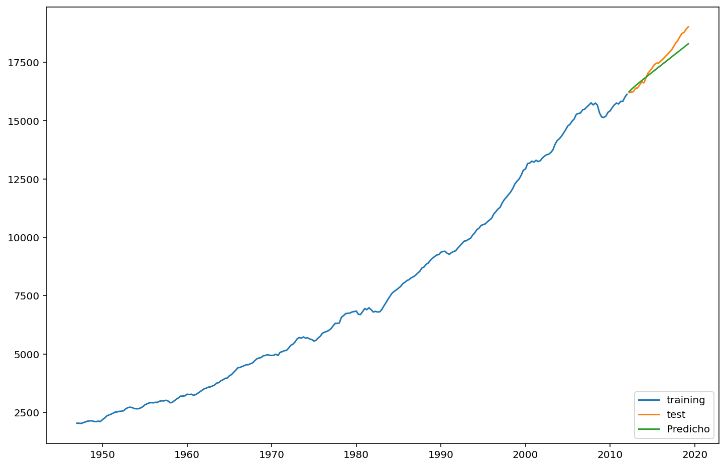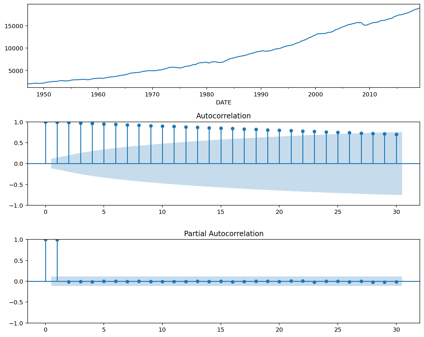 Pasemos a un ejemplo real, volvamos a la serie de GDP que trabajamos al principio: