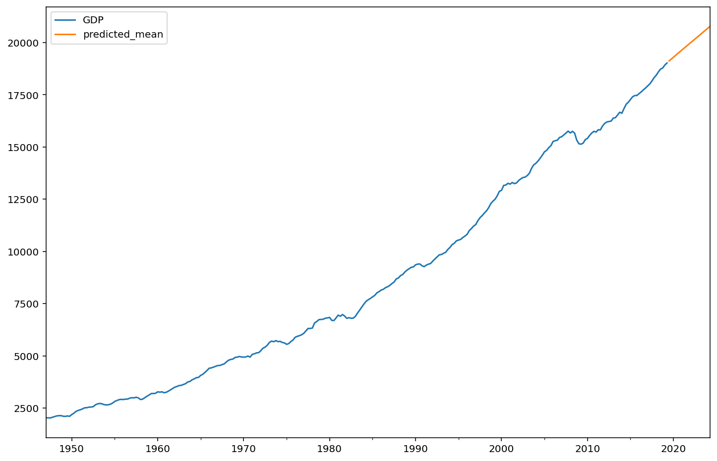 model = ARIMA(GDP, order=(2,2,1))results = model.fit()print(results.summary())
