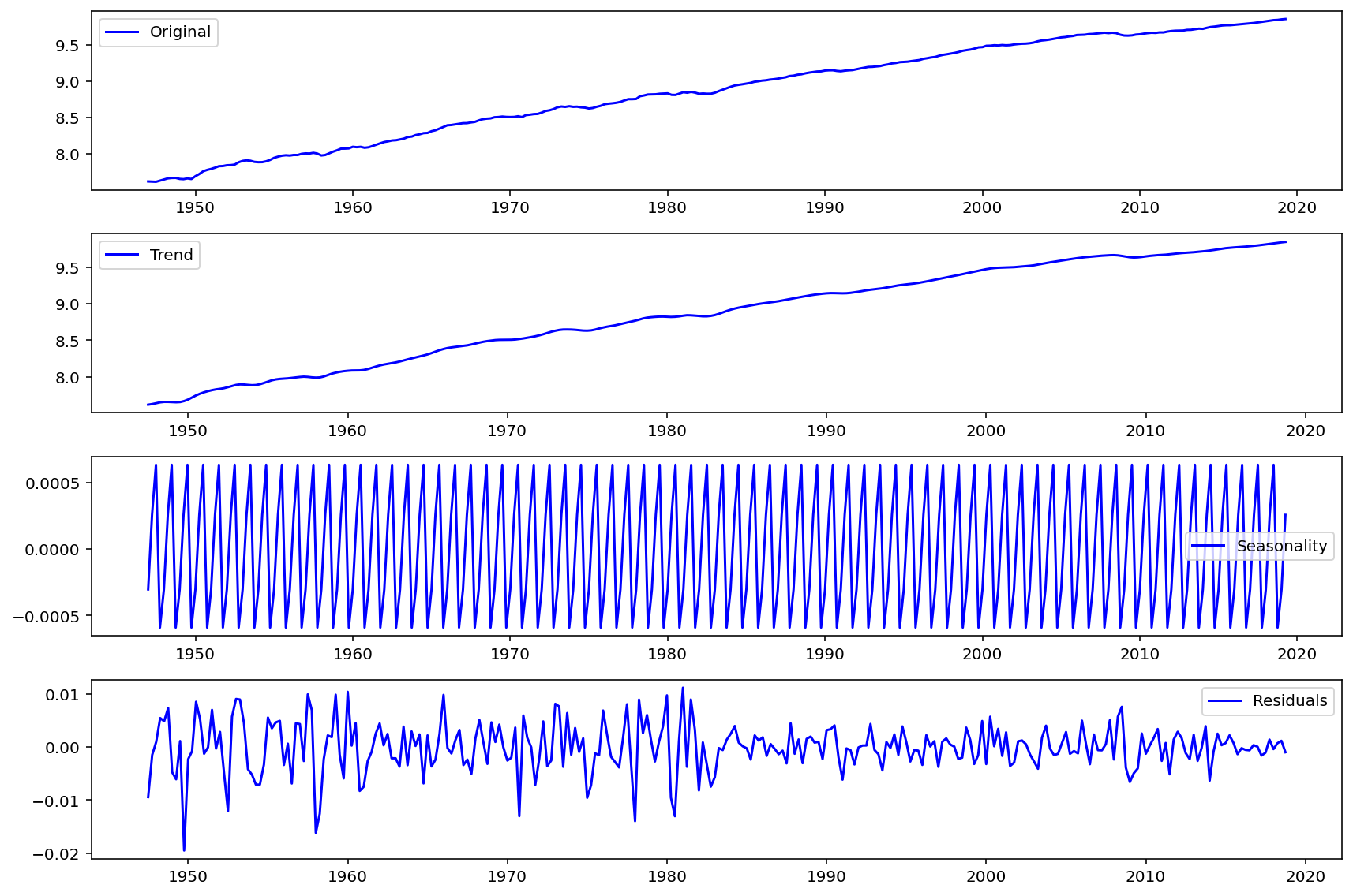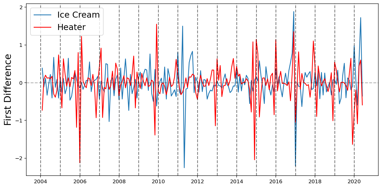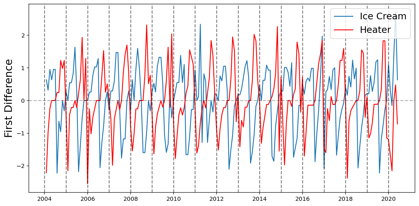 def differentiate(values, d=1):# First value is required so that we can recover the original values with np.cumsum x = np.concatenate([[values[0]], values[1:]-values[:-1]])if d ==1:return xelse: return differentiate(x, d -1)